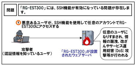 認証情報を知っていれば、当該機器にログイン可能です。その結果、システム内の情報漏洩、システムの改ざん、サービス運用妨害(DoS)攻撃等が行われる可能性があります。