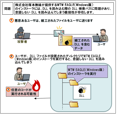 WTW EAGLE(Windows版)のインストーラにおけるDLL読み込みに関する脆弱性 | |