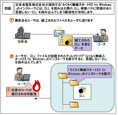 らくらく無線スタートEX for WindowsのインストーラにおけるDLL読み込みに関する脆弱性 | |