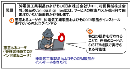 沖電気工業株式会社が提供する製品およびそのOEM(株式会社リコー、村田機械株式会社)製品のConfiguration Toolには、次の脆弱性が存在します。 | |